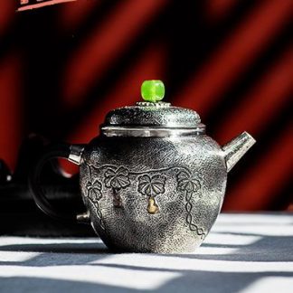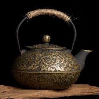 Since the cast iron teapot has the characteristic that the water temperature is higher and the heat transfer will be faster, it can stimulate and enhance the aroma of tea by using it to brew, especially for teas like Pu-erh or Tie Guan Yin. It takes bronze as the dominant color, which makes the teapot both retro and delicate. The main body is crafted with peony to represent wealth and auspiciousness, which has a beautiful symbolic meaning.
